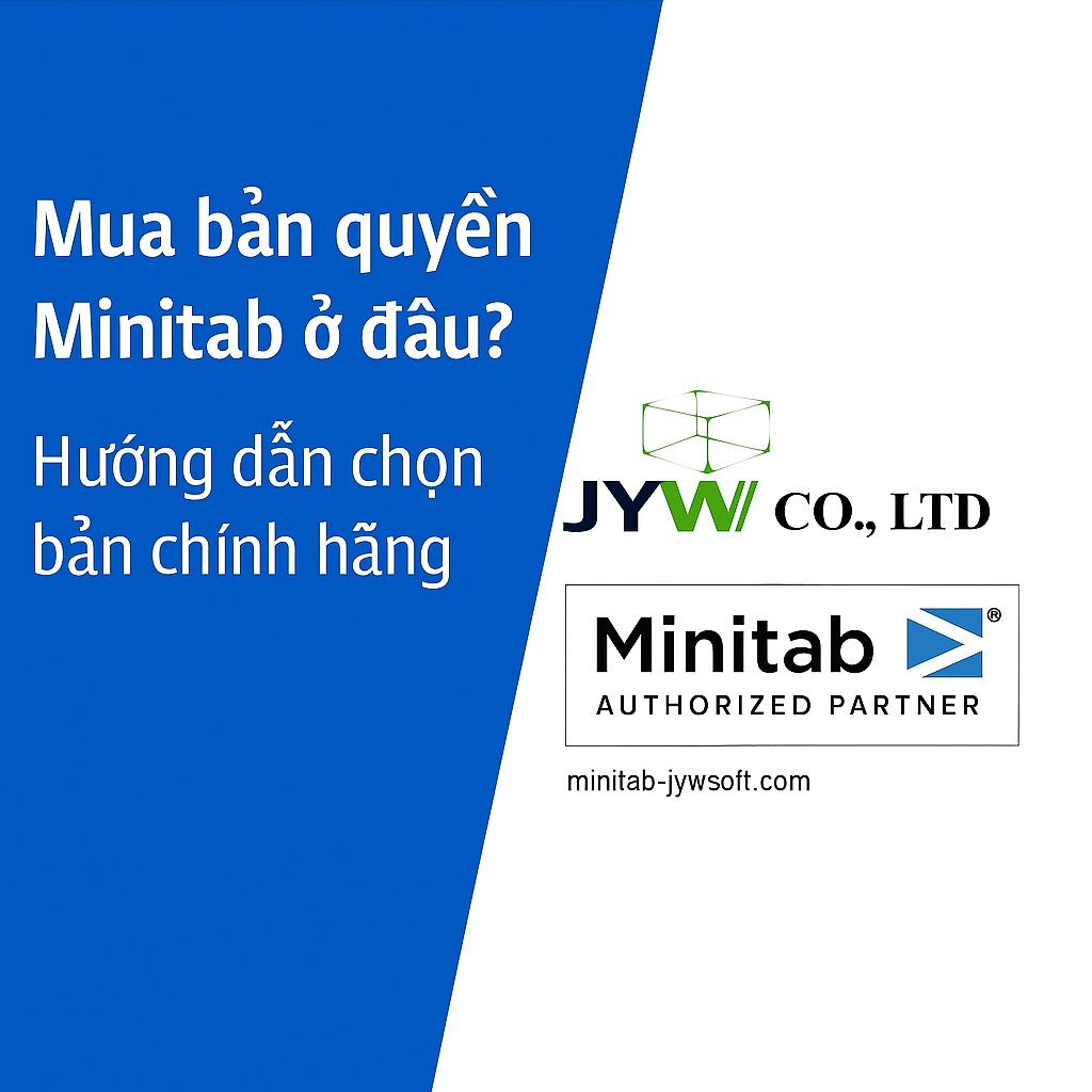 Nếu bạn đang băn khoăn Mua bản quyền Minitab ở đâu, hãy chọn nhà phân phối được Minitab công nhận chính thức. JYW Soft – đối tác ủy quyền tại Việt Nam – cung cấp dịch vụ tư vấn, cài đặt, hướng dẫn sử dụng và hỗ trợ kỹ thuật. Mỗi license đều được cấp trực tiếp từ hãng, có hóa đơn hợp pháp và hỗ trợ kích hoạt online an toàn.